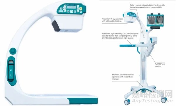 2021年,美國OXOS Medical公司的掌上動(dòng)態(tài)DR——Micro C獲批FDA,重量不到3千克(更多信息請點(diǎn)擊這里)。2024年,該公司又推出了最新產(chǎn)品MC2,目前在等待FDA的審批。