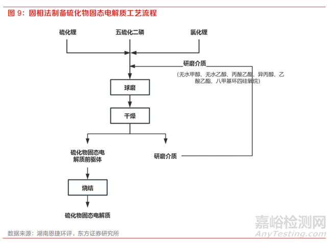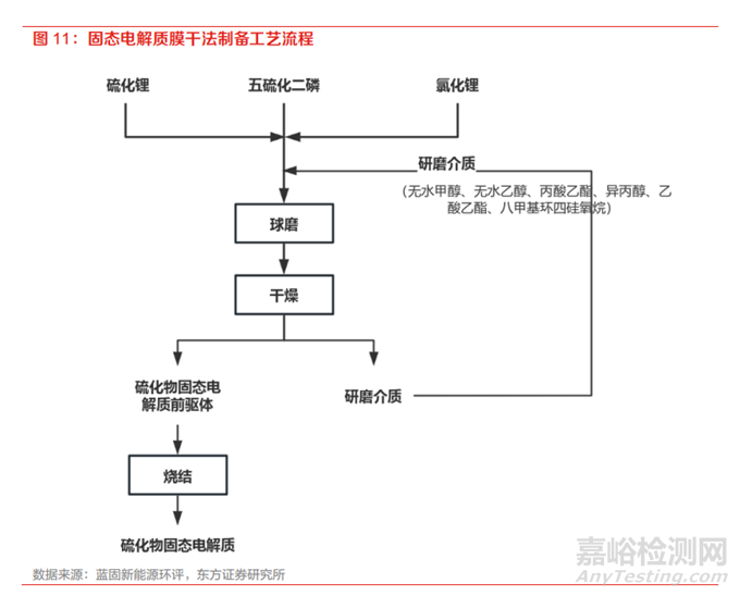 硫化物固態(tài)電解質(zhì)可采用固相法或液相法進(jìn)行合成。其中,固相法以高能球磨后熱處理的方法為主,主要工藝流程包括: