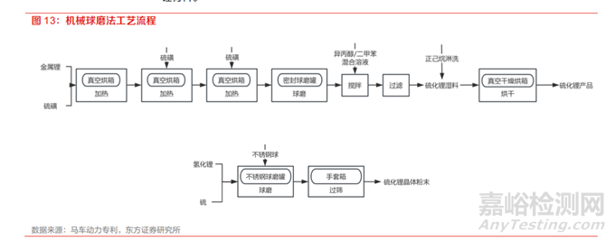 機(jī)械球磨法是在惰性氣氛下,將單質(zhì)硫和金屬鋰/氫化鋰按比例混合后進(jìn)行機(jī)械球磨反應(yīng),最終得到硫化鋰產(chǎn)品。