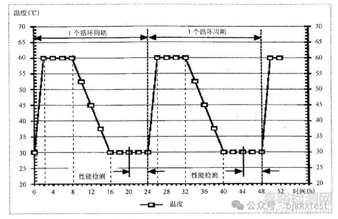 試驗開始前,對受試樣品進行初始檢測,初始檢測結(jié)束后,受試樣品斷電。在第5和第10個循環(huán)接近結(jié)束時進行中間檢測。試驗結(jié)束并恢復到正常大氣條件后進行最終檢測。
