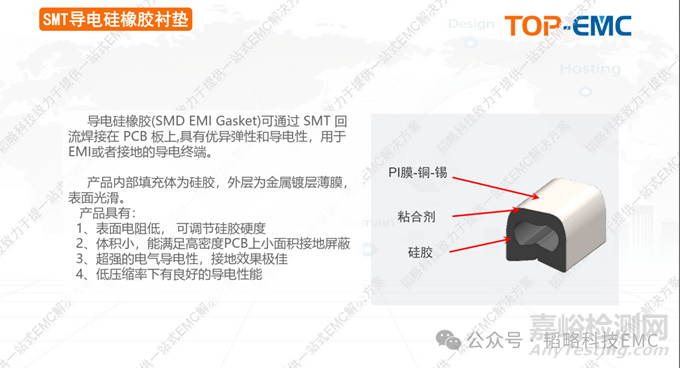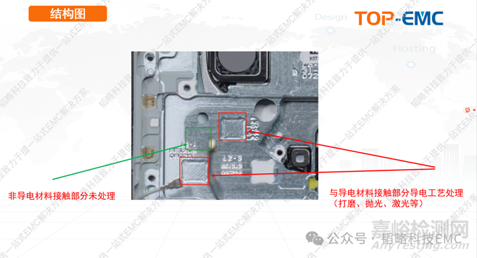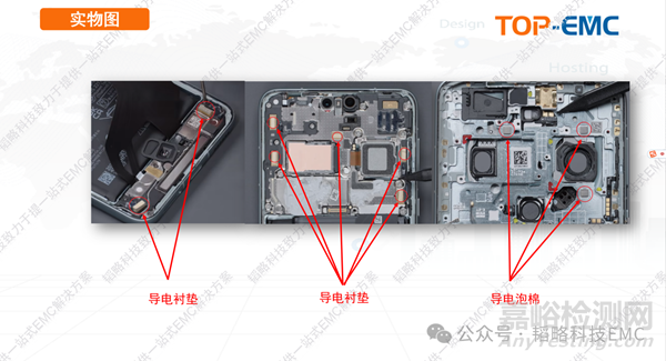 從圖上可以看到導電材料使用部分都做了導電處理工藝,來保證接地的有效性(降低地阻抗)。這一點在產(chǎn)品使用上是非常重要的。