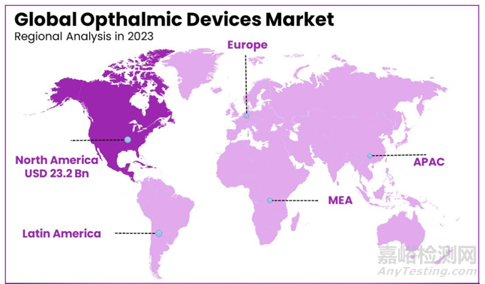 在2023年,北美地區(qū)占據(jù)了主導(dǎo)的市場(chǎng)份額,超過了46.2%,市場(chǎng)價(jià)值達(dá)到了232億美元。由于該地區(qū)糖尿病視網(wǎng)膜病變、視力喪失和失明的高發(fā)率,北美地區(qū)在眼科設(shè)備市場(chǎng)上占據(jù)主導(dǎo)地位。該行業(yè)的高影響力驅(qū)動(dòng)因素包括迅速老齡化的人口和不良生活方式及高壓力水平帶來的慢性眼部疾病發(fā)病率的增加,例如糖尿病視網(wǎng)膜病變。