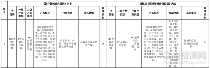 值得注意的是作用于皮膚表面的射頻設(shè)備此前屬于Ⅱ類醫(yī)療器械,在《關(guān)于調(diào)整<醫(yī)療器械分類目錄>部分內(nèi)容的公告》(2022年第30號(hào))附件中該類設(shè)備管理類別由Ⅱ類調(diào)整為Ⅲ類,同時(shí)修改了產(chǎn)品描述和預(yù)期用途。