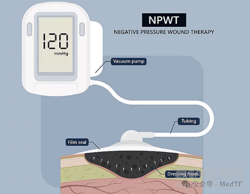 但是對(duì)于一些傷口,僅僅使用敷料無(wú)法起到很好效果。因此發(fā)明負(fù)壓傷口治療技術(shù)( NPWT ),也稱真空輔助傷口閉合,是指?jìng)诜罅舷到y(tǒng)連續(xù)或間歇地將低于大氣壓的壓力施加到傷口表面。NPWT給患者和醫(yī)生帶來(lái)很多好處:大大減少換藥引起的感染;減輕患者痛苦以及醫(yī)務(wù)人員工作量;及時(shí)有效的清除傷口滲液和脫落的壞死組織,減少異味,加速創(chuàng)面愈合等等。