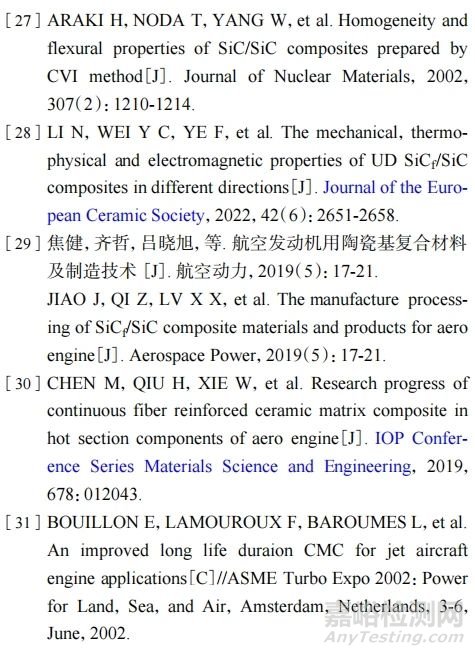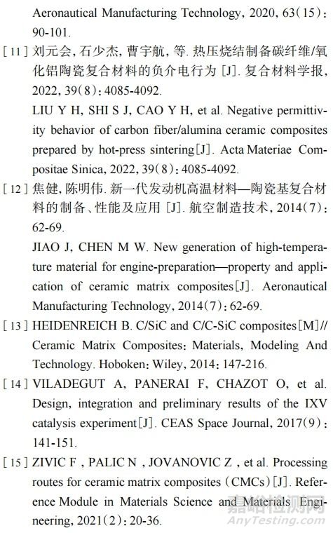(3)考慮到陶瓷基復合材料的耐溫性能和抗氧化性能,應根據(jù)不同使用環(huán)境溫度選擇相應的陶瓷基復合材料。