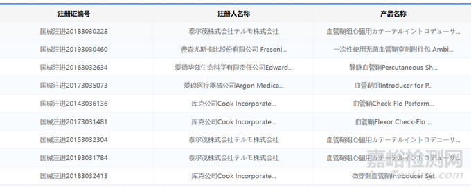 ▲已獲批的進口血管鞘產(chǎn)品