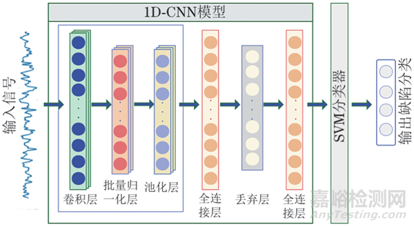 通過搭建1D-CNN-SVM模型實(shí)現(xiàn)對(duì)鋼絲繩損傷進(jìn)行分類識(shí)別,模型整體架構(gòu)如圖2所示。