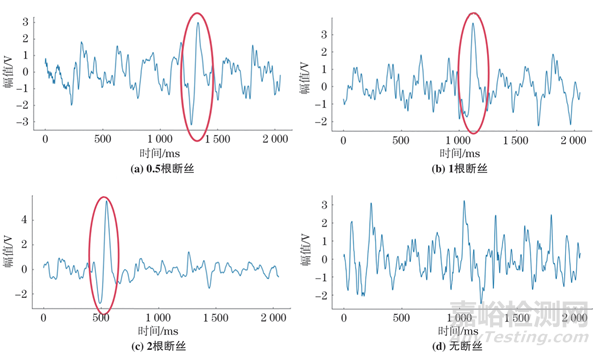 3種類型損傷及無損傷鋼絲繩的檢測(cè)信號(hào)波形如圖5所示,其樣本數(shù)據(jù)如表1所示。
