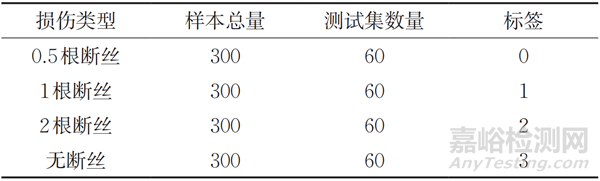 表1 3種類型損傷及無損傷鋼絲繩樣本數(shù)據(jù)