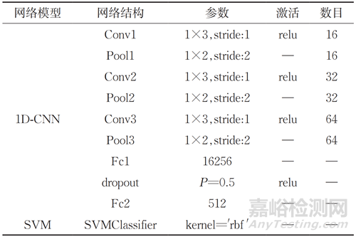 表2 1D-CNN-SVM模型參數(shù)設(shè)置