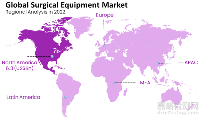 根據(jù)地區(qū)分類,全球手術(shù)設(shè)備市場分為北美、歐洲、亞太、拉丁美洲和中東及非洲。在這些地區(qū)中,北美地區(qū)主導(dǎo)了全球市場,占據(jù)了38.0%的市場份額。