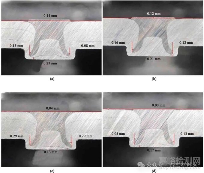 圖3 不同鉚接速度的自沖鉚接頭金相組織剖面