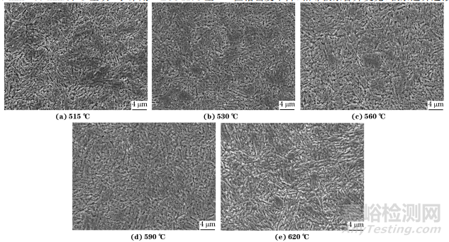 圖2 不同溫度回火后5Cr5MoSiV1鋼的顯微組織