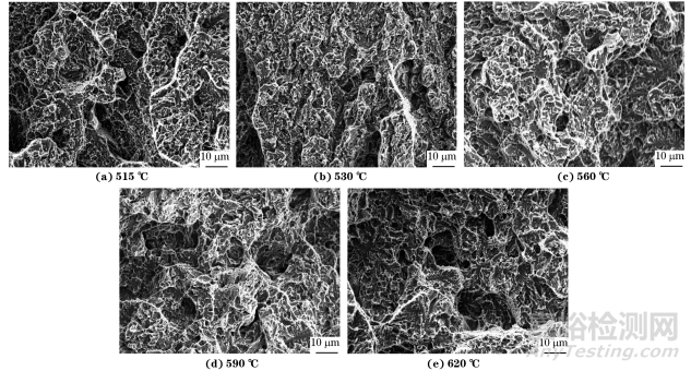 圖4 不同溫度回火后5Cr5MoSiV1鋼的沖擊斷口形貌