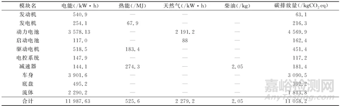 表4 各模塊制造與裝配階段能耗清單[12-14,17-21]