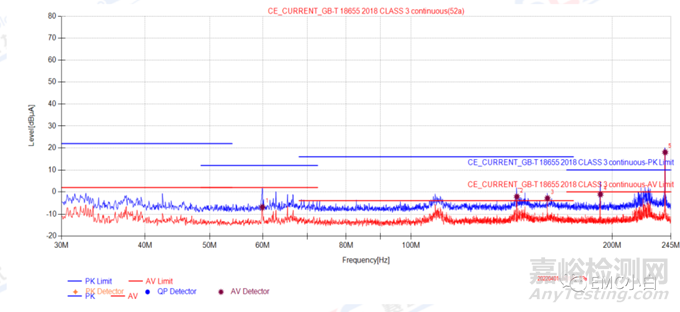 行車記錄儀CE電流法在144MHz,240MHz超標(biāo),如下圖所示: