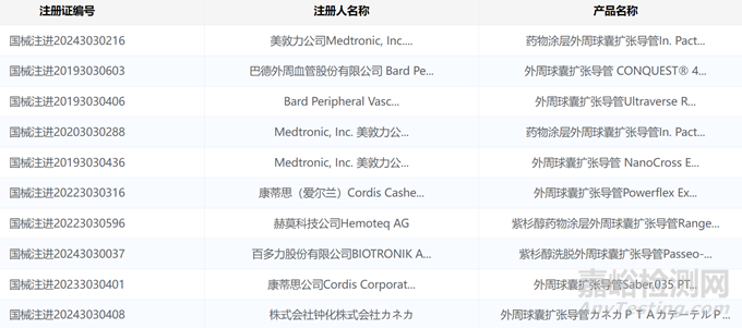 從藥監(jiān)局官網(wǎng)查詢(xún),目前已獲批的進(jìn)口外周球囊擴(kuò)張導(dǎo)管有 16 款。