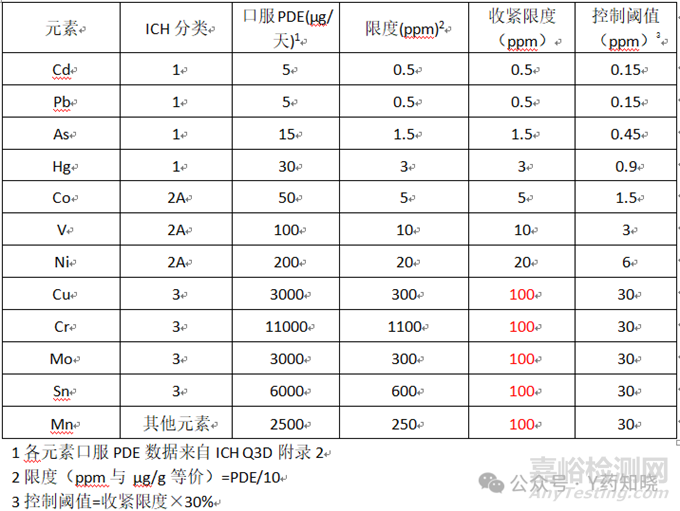 根據(jù)ICH Q3D指導原則,元素分為以下幾種。