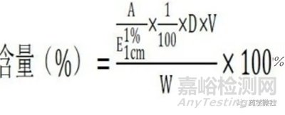 (2)吸收系數(shù)法按各品種項(xiàng)下方法配制供試品溶液,在規(guī)定的波長處測定其吸光度,再以該品種在規(guī)定條件下的百分吸收系數(shù)(E),按下式計算供試品的含量