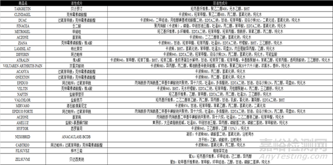 表22000年至2024年FDA批準(zhǔn)的局部皮膚用凝膠劑產(chǎn)品處方組成