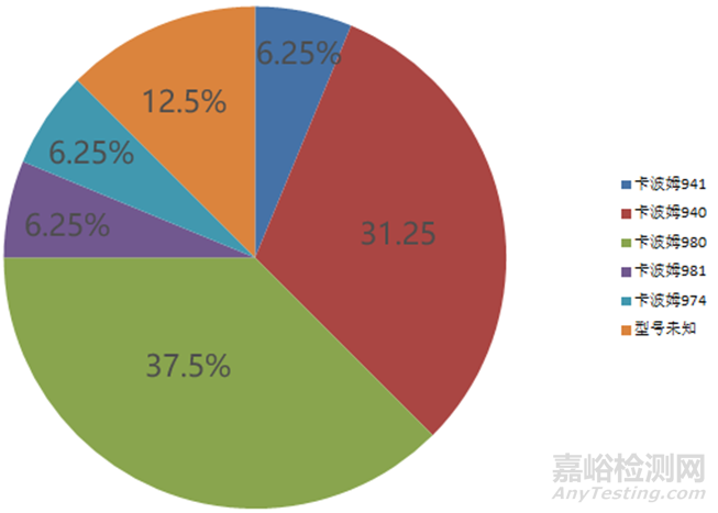 卡波姆有多種型號(hào),包括卡波姆940、941、974、980、981等。在16款以卡波姆為凝膠基質(zhì)的產(chǎn)品中,有6款使用了卡波姆980(占比37.5%),其次是卡波姆940(5款,31.25%)。卡波姆941、卡波姆981和卡波姆974等型號(hào)均各有一款產(chǎn)品(如上圖所示)。