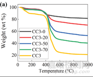 圖6. 所有樣本的熱重分析(TGA)曲線