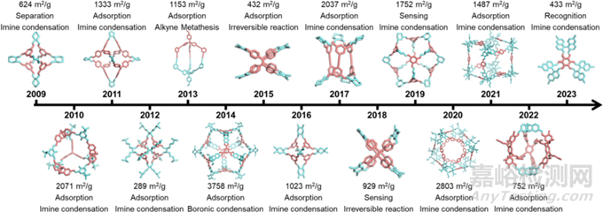多孔有機(jī)籠(Porous Organic Cages,簡稱POCs)是一種新型多孔分子材料,由一些輕質(zhì)元素(如C、H、N、O、B等)通過共價(jià)鍵連接形成的具有內(nèi)部空腔結(jié)構(gòu)的三維籠狀有機(jī)分子,這些分子具有剛性骨架結(jié)構(gòu)、形狀持久穩(wěn)固,即使在晶體、無定形固體、多孔液體中也能保持固有的籠型結(jié)構(gòu)。POCs 具有獨(dú)特的分子內(nèi)部空腔、可調(diào)的孔隙結(jié)構(gòu)、較高的比表面積、良好的溶解性、較輕的材質(zhì)等優(yōu)點(diǎn),在氣體吸附和存儲、分子分離、催化、傳感、色譜等領(lǐng)域都具有廣闊的應(yīng)用前景。