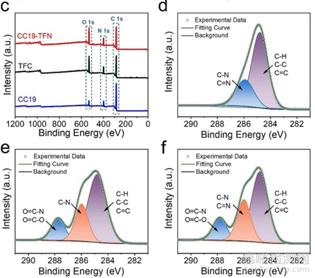 圖8. CC19、TFC和CC19-TFN膜的XPS光譜及通過XPS測量的C1s光譜