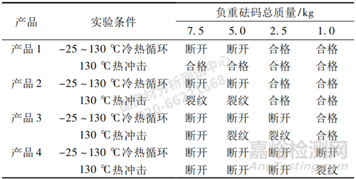 表 1 冷熱循環(huán)和熱沖擊的實(shí)驗(yàn)結(jié)果對應(yīng)關(guān)系