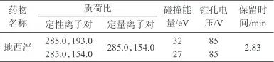 表2 地西泮質(zhì)譜分析參數(shù)