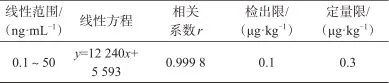 表4 地西泮的線性范圍、線性方程、相關(guān)系數(shù)、檢出限和定量限