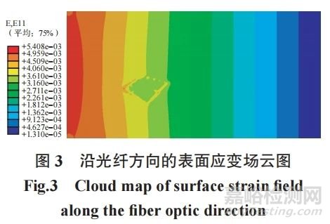 針對圖2中的損傷,有限元模擬的應變分布結果如圖3所示,可以看到分層損傷位置的應變分布發(fā)生一定擾動,但應變分布特征與損傷區(qū)域并不存在精確對應的關系。