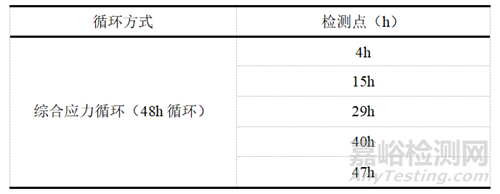 按照單件壓力信號器MTBF為5000h進行三綜合可靠性試驗,根據(jù)試驗方案21,總有效試驗時間不低于T=5000h×1.1=5500h,規(guī)定每個試驗循環(huán)為48h,根據(jù)可靠性試驗的要求,試驗中需對被試樣件進行功能性能測試,以驗證其功能完好性,檢測時機見表2。