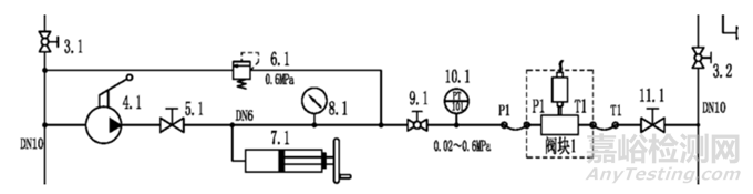 圖1 壓力信號器測試系統(tǒng)單通道供壓原理圖