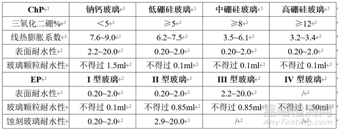 國內(nèi)根據(jù)玻璃成分的不同,可分為鈉鈣玻璃、低硼硅玻璃、中硼硅玻璃和高硼硅玻璃四類。主要檢測指標(biāo)包括三氧化二硼的含量以及平均線熱膨脹系數(shù)。在注射液仿制藥及一致性評價(jià)申報(bào)中,常用的是中硼硅玻璃材質(zhì)。