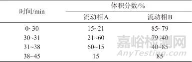 色譜柱:Kromasil 100-5型C18柱[4.6 mm×250 mm,5 μm;諾力昂新材料(蘇州)有限公司];柱溫:40 ℃;進樣體積:10 μL;檢測波長:250 nm;流動相:A相為乙腈,B相為0.025 mol/L乙酸銨溶液(用乙酸調(diào)pH至4.5),流量為1.0 mL/min,梯度洗脫,洗脫程序見表1。