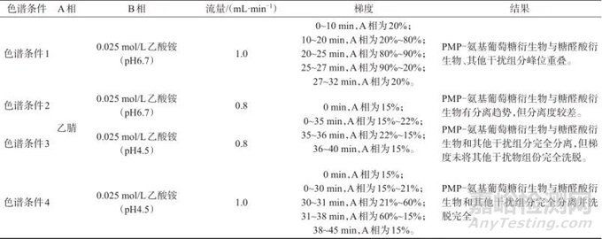 Tab. 2 Isolation effect of PMP glucosamine derivatives under different chromatographic conditions