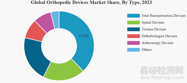 關節(jié)重建器械部門由于膝關節(jié)和髖關節(jié)置換術的增加而占據(jù)主導地位。根據(jù)類型,市場分為脊柱器械、關節(jié)重建器械、創(chuàng)傷器械、骨生物材料器械、關節(jié)鏡器械和其他。其中,關節(jié)重建器械部分在2023年占據(jù)了市場的主導份額。肩關節(jié)和四肢重建、膝關節(jié)和髖關節(jié)置換以及其他與這些關節(jié)相關的肌肉骨骼手術數(shù)量的增加,促進了這一部分的增長。