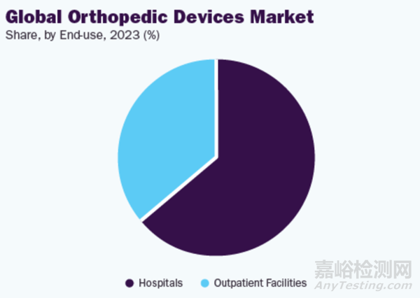 醫(yī)院將繼續(xù)成為主導細分市場,歸因于醫(yī)院提供的充足報銷政策。根據(jù)終端用戶,市場被劃分為醫(yī)院&門診手術中心(ASCs)、骨科診所及其他。2023年,醫(yī)院部分占據(jù)了最高的市場份額,并預計在預測期內將以顯著的復合年增長率增長。骨科器械主要用于醫(yī)院,因為它們需要通過手術植入。此外,大量遭受骨科損傷的患者主要是在醫(yī)院接受治療。除了治療外,醫(yī)院提供的充足報銷政策也是導致高比例患者選擇在醫(yī)院接受治療的關鍵因素。然而,隨著微創(chuàng)手術程序的日益普及,預計將會出現(xiàn)向門診手術中心偏好的轉變。