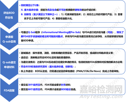 獲批BDD后,申請(qǐng)人可通過多種方式獲得器械開發(fā)的反饋意見,包括沖刺討論(sprint discussions)、數(shù)據(jù)開發(fā)計(jì)劃討論、臨床試驗(yàn)方案討論。此外,申請(qǐng)人還將在今后提交的器械監(jiān)管申請(qǐng)中獲得優(yōu)先審評(píng),包括Q-Submission、IDE申請(qǐng)和上市申請(qǐng),進(jìn)一步縮短研發(fā)、上市時(shí)間。