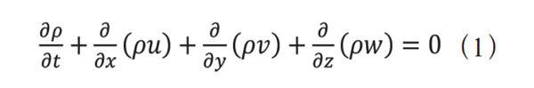 其中,ρ 為密度,kg/m3 ;u、v 和w 為速度矢量在 x、y 和 z 三個(gè)方向上的分量,m/s ;t 為時(shí)間,s。
