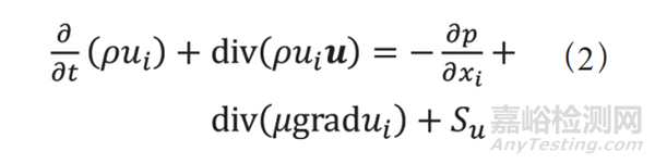 是速度矢量,mv/s ;p 是流體微元體上的壓力,N ;μ 是動(dòng)力黏度,N · s/m2 ;Su 是源項(xiàng);i 為 x,y,z。