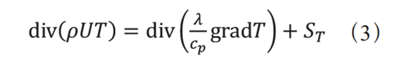 其中,cp 為定壓比熱,J/kg · K ;T為溫度,K ;λ 為流體的導(dǎo)熱系數(shù),W/m2 · K;ST 為流體的內(nèi)熱源以及流體粘性作用下機(jī)械能轉(zhuǎn)換為的熱能的總和。