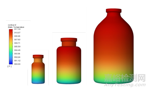 圖13 不同規(guī)格西林瓶溫度分布云圖