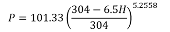 氣壓隨高度的變化是比較復(fù)雜的,對于不同的地理區(qū)域,在同一高度上氣壓隨緯度的變化而變化;對于同一個(gè)地理區(qū)域,在同一高度上氣壓隨季節(jié)的變化而變化。目前常用兩種常用方法獲得規(guī)定高度下的氣壓值:一是參考標(biāo)準(zhǔn)ISO 2533;二是可參考GJB150.24A,按照相應(yīng)的公式進(jìn)行計(jì)算,即當(dāng)高度H≤20km時(shí),壓力P的計(jì)算公式為