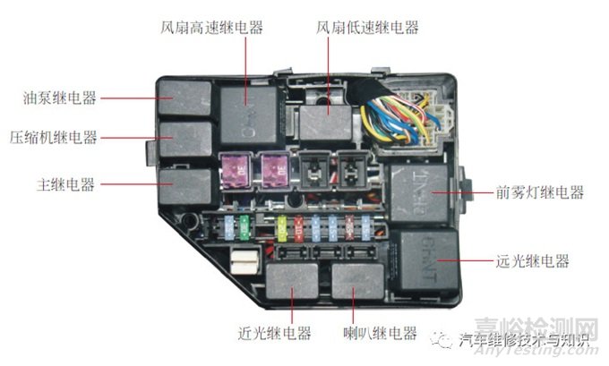 繼電器一般安裝在中央配電盒內(nèi),如下圖所示。