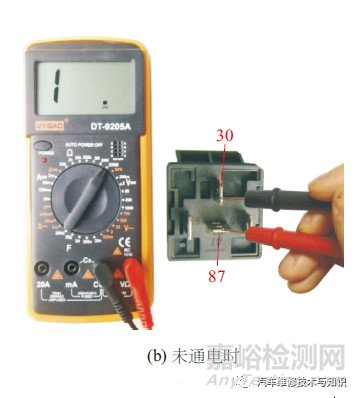用萬用表電阻擋檢測繼電器線圈的阻值,從而判斷該線圈是否存在開路現(xiàn)象。