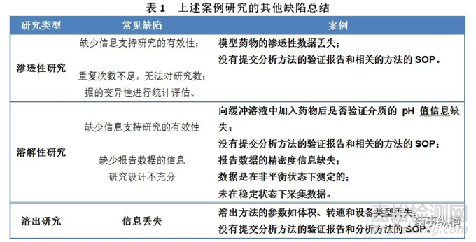 除了上述案例中討論的主要缺陷之外,還在這些案例中發(fā)現(xiàn)了其他常見的缺陷。這些缺陷主要與提交的資料不完整有關(guān),如果多加注意就可以避免這些缺陷。按照研究類型分類,將這些缺陷總結(jié)在表1中。