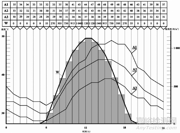 √ 程序1(循環(huán)試驗)包含三種高溫日循環(huán)試驗,一個是1120w/m2和49℃,一個是1120w/m2和44℃,一個是1120w/m2和39℃。