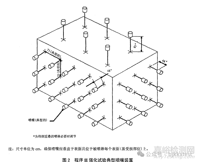 e)轉(zhuǎn)動(dòng)試件,使其在試驗(yàn)周期內(nèi)可能會(huì)暴露在吹雨中的任何其他表面,都能暴露在降雨和吹雨中。